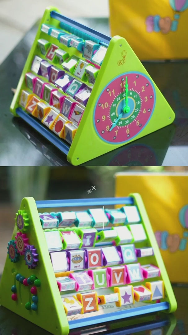 8-in-1 Activity Triangle Toy | Learn English Alphabets, Tamil Letters, States & capitals of India, Abacus, Draw & Writing Board, Clock & Spin Gears – Best Activity Toy for Preschoolers