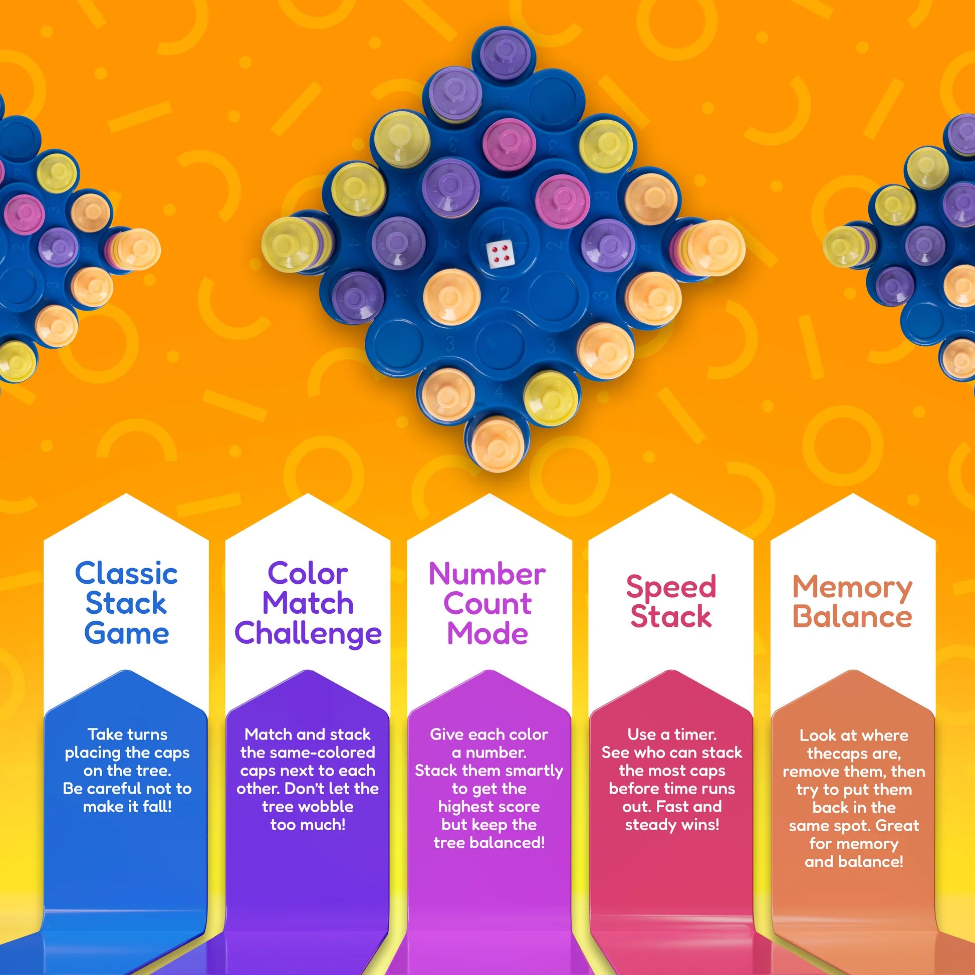 ✅ Classic Stack – Take turns stacking caps without toppling the tree